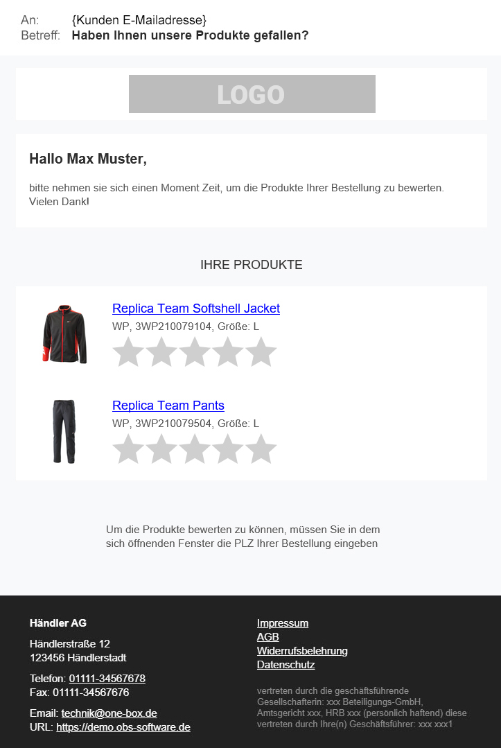 - Sende E-Mails, um nach Produktbewertungen zu fragen