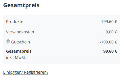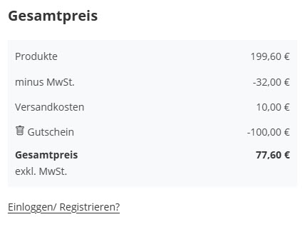 Ein Gutschein kann den gesamten Warenkorbwert reduzieren: