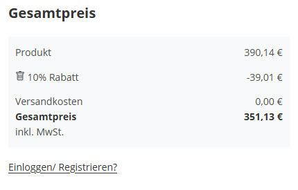 - Der Rabatt reduziert nur den Produktwert, nicht die Versandkosten.