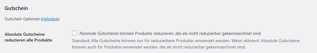 Aktiviere diese Option, wenn das einlösen eines Gutscheins auch für nicht reduzierbare Produkte gelten soll.
